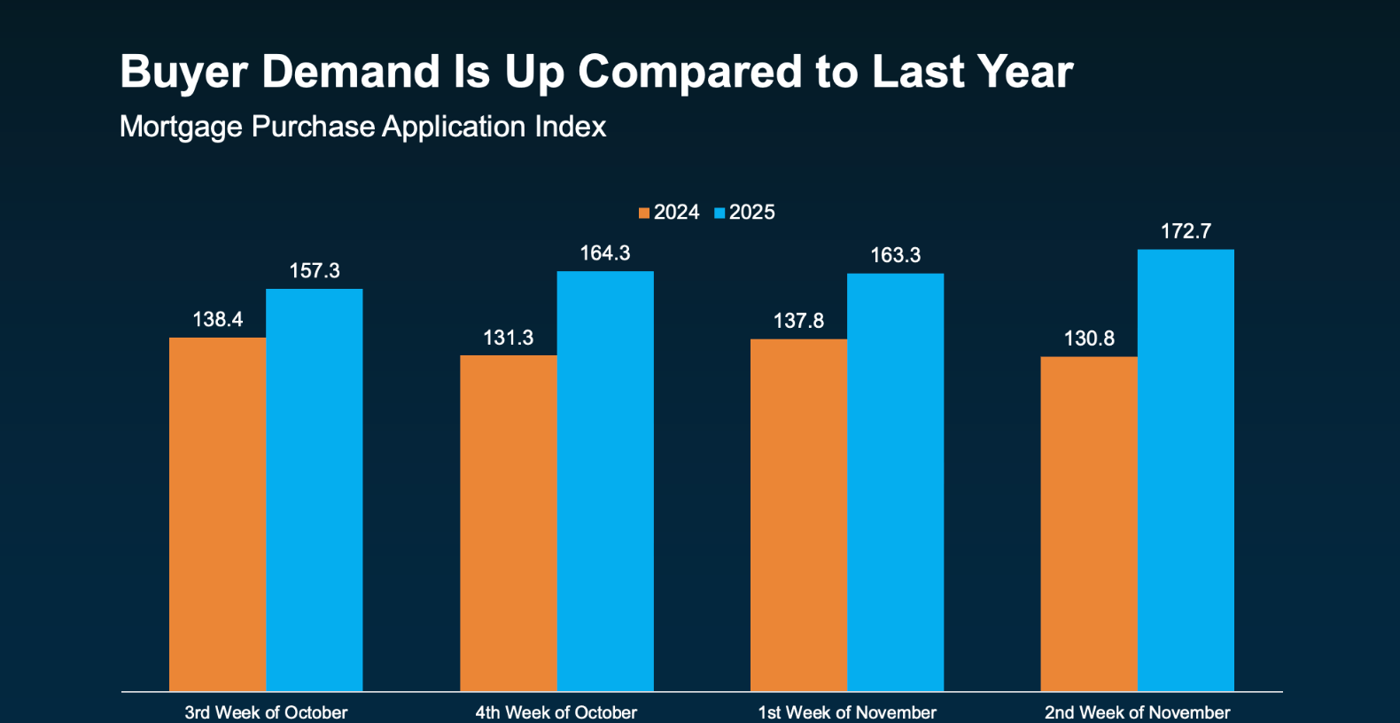The Mortgage Bankers Association reports that purchase applications are up compared to last year, a clear sign that demand is strengthening. Industry experts, including economists from Fannie Mae, MBA, and NAR, expect this momentum to continue into 2026. It won’t be a fast or dramatic comeback, but the steady pace is promising.