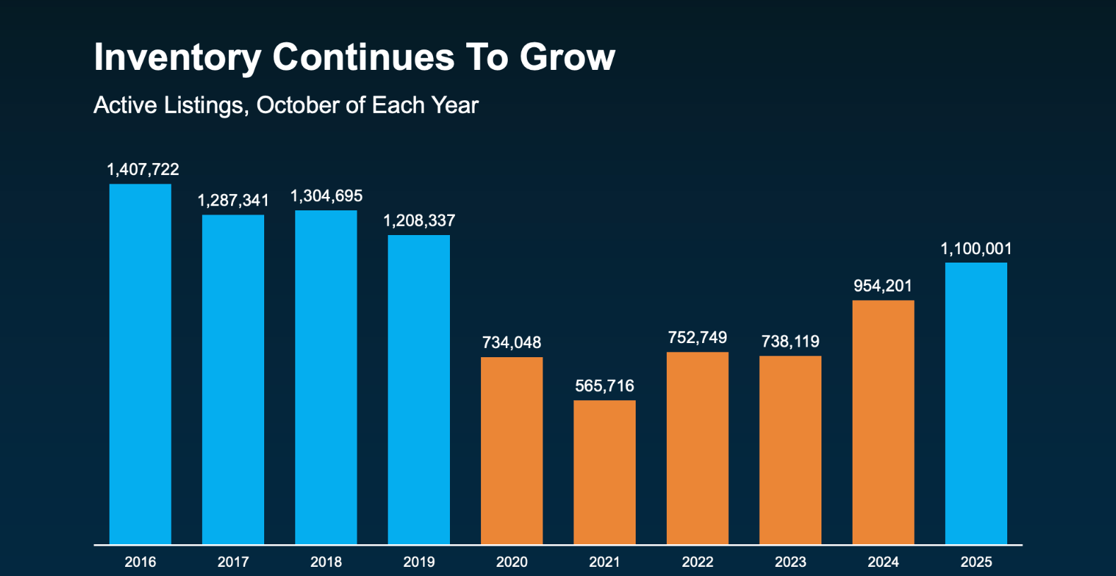 For years, the “I don’t want to give up my low rate” mindset kept many homeowners firmly planted and inventory extremely tight. But now, as mortgage rates ease and life changes take priority again, more homeowners are choosing to make a move. And that’s showing up in the data. Realtor.com reports that the number of homes for sale has increased significantly, approaching inventory levels we haven’t seen in nearly six years.