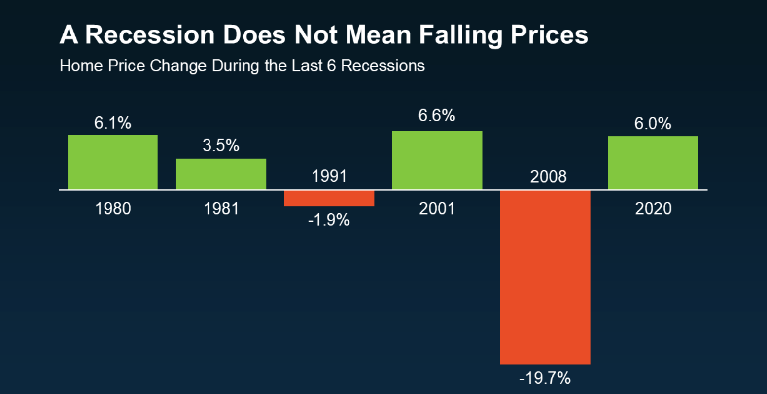 A recession does not guarantee falling home prices.